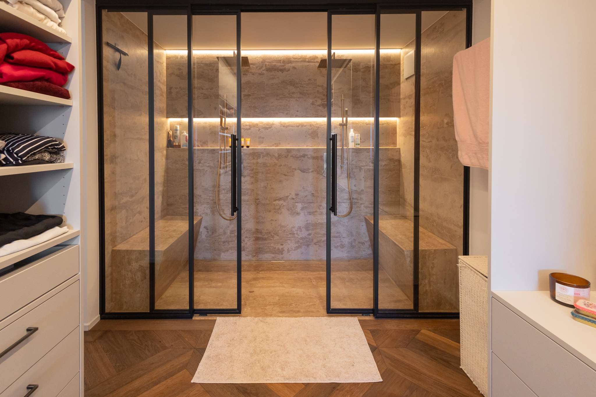 Ein weiterer Trend zeigt sich im Badezimmerbereich, wo spa-inspirierte Rückzugsorte immer beliebter werden. Bäder werden zu persönlichen Wellness-Oasen mit Elementen wie freistehenden Badewannen, Regenbrausen und natürlichen Materialien, die Entspannung und Luxus vermitteln.